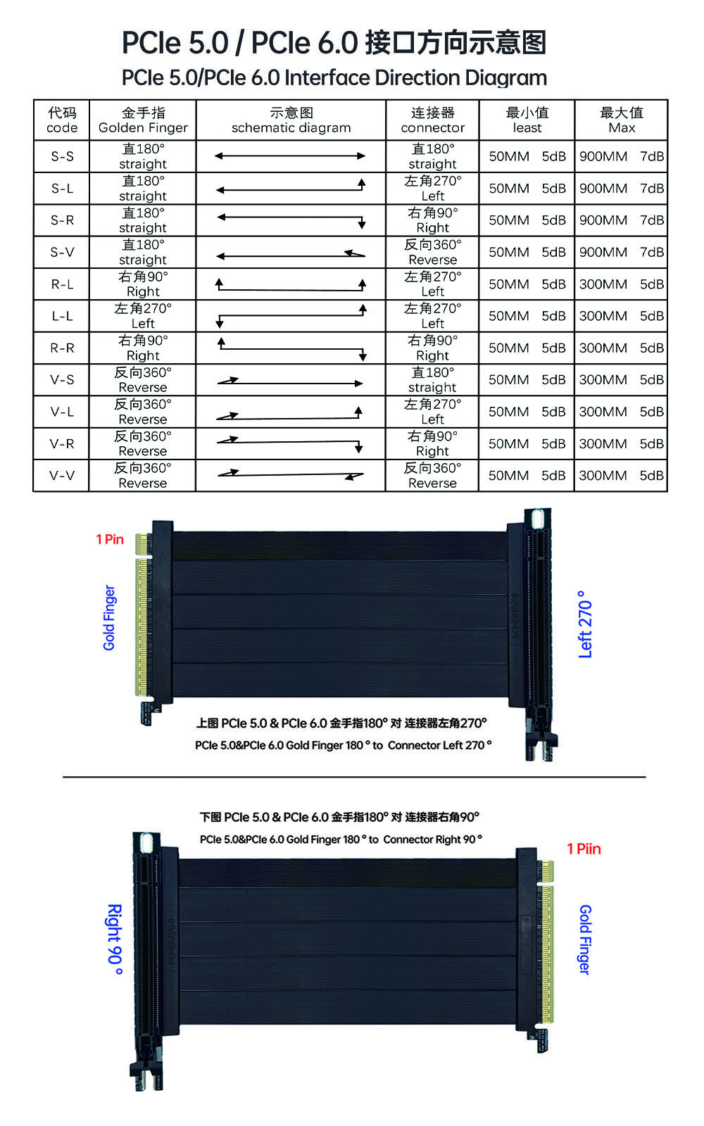 PCIe 5.0 164P 金手指 180 ° to 连接器右角90° 白线