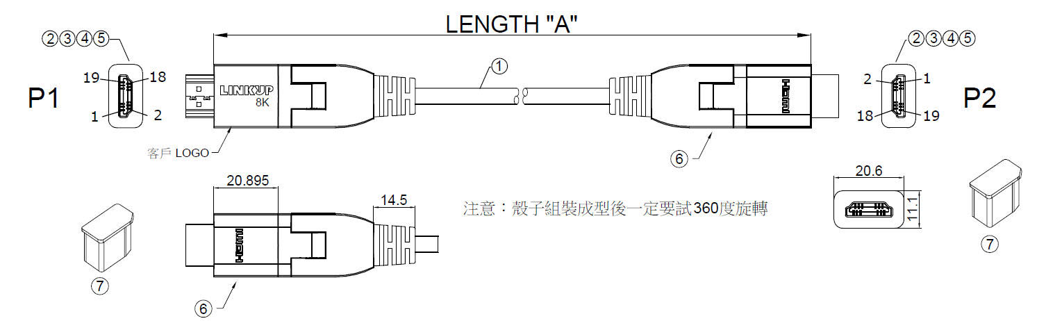 HDMI 2.1V M 360°旋转 对 HDMI 2.1V M 360°旋转