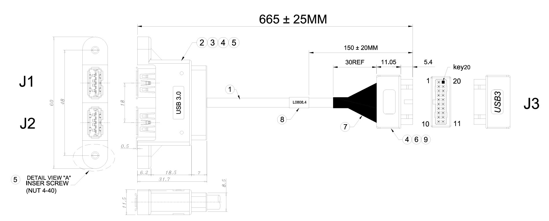 USB 3.0 A/母*2POTR+EAR 对 USB 3.0 20P/母