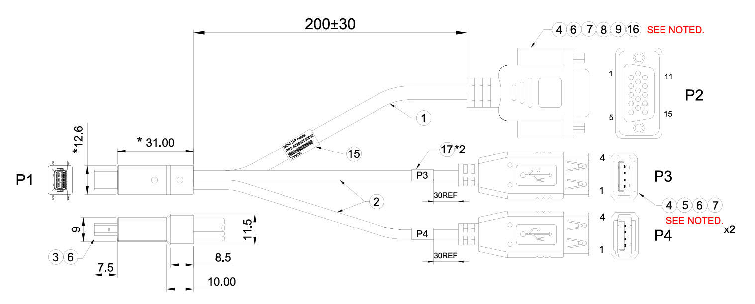 DP 20P公 对 HDB 15P母+USD2.0 A公 三合一
