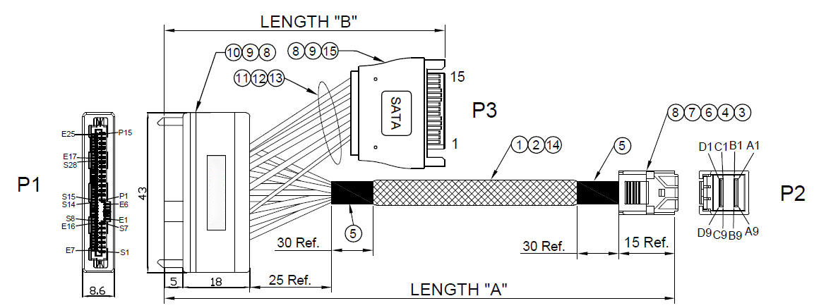 miniSAS SFF-8639 to SFF-8643 + SATA 15pin male+braided hose