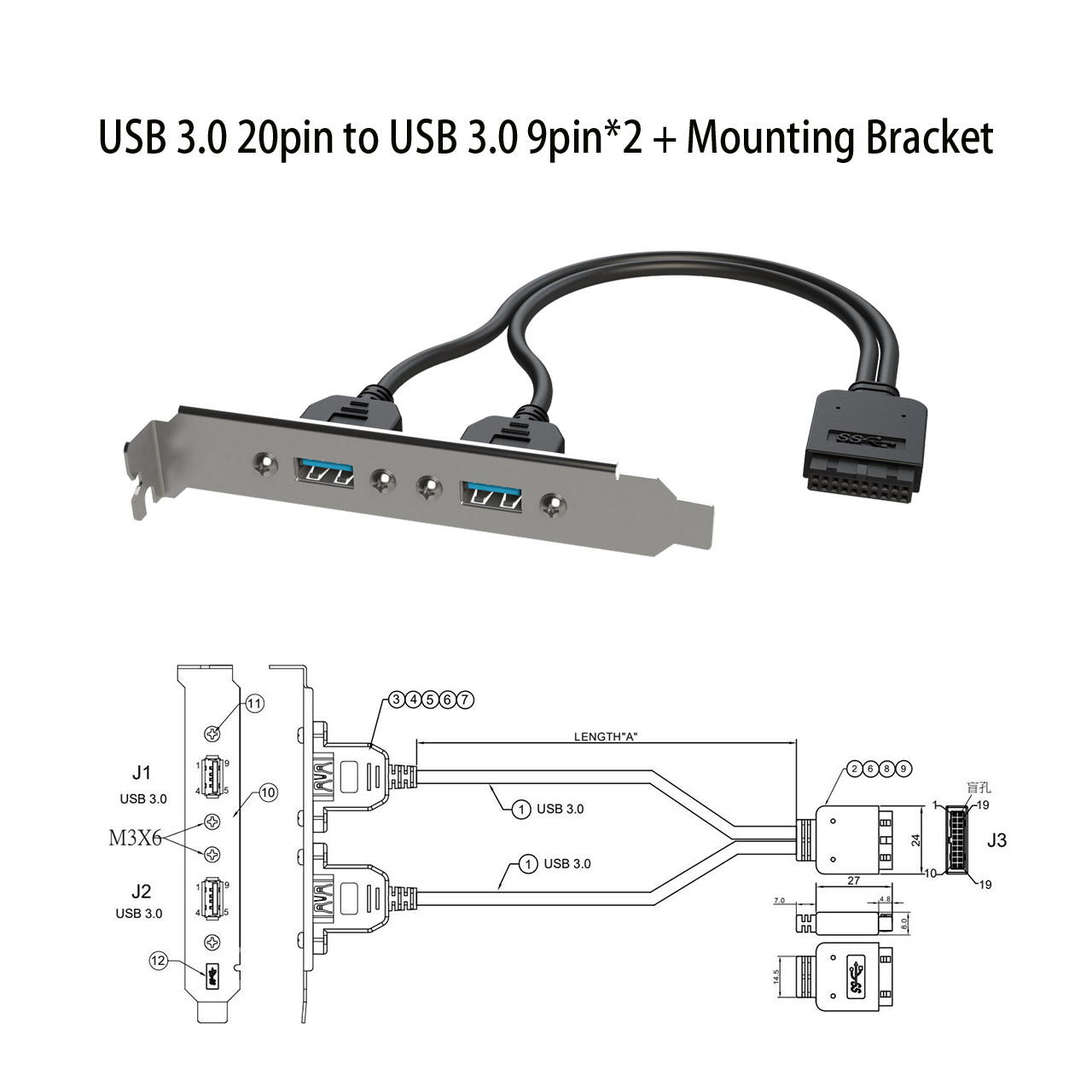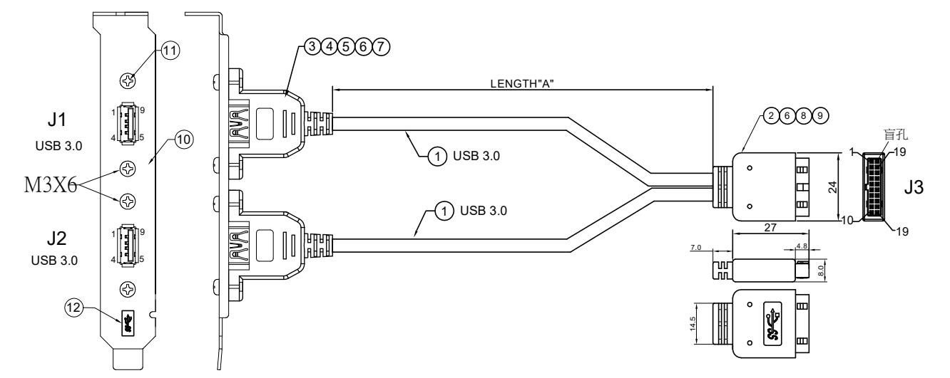 USB3.0 20pin轉USB3.0 9Pin*2+檔板支架 - T1070C8201302 | 产品详情