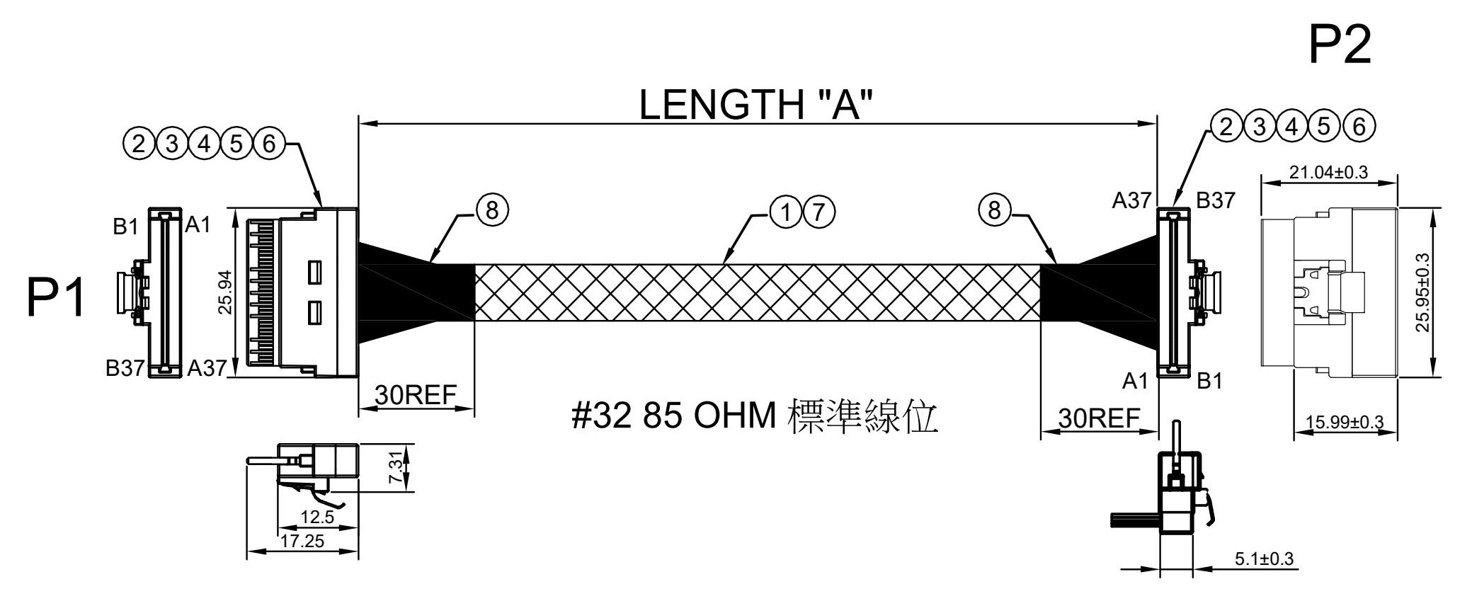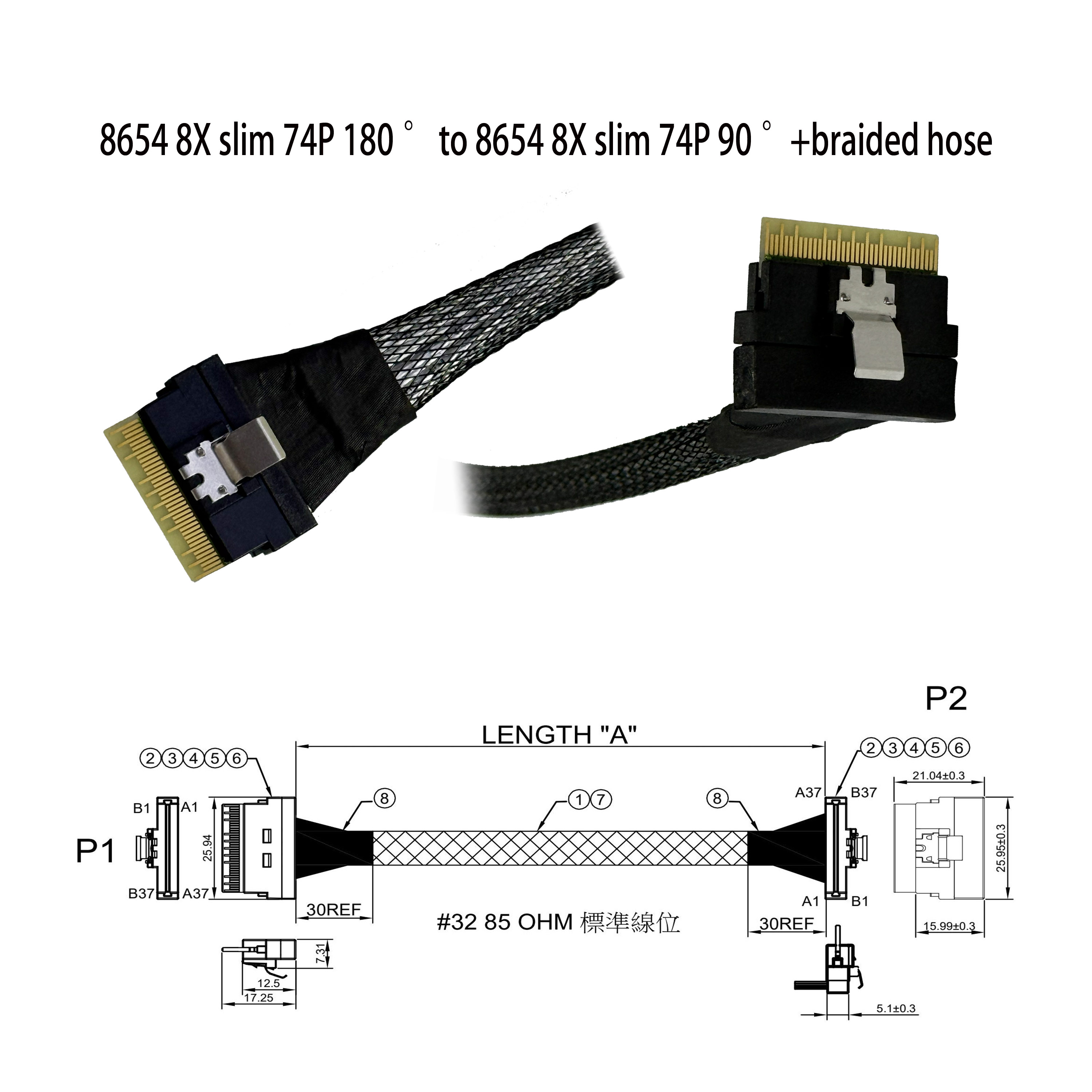 8654 8X 纖薄型 74P 180 ° to 8654 8X 纖薄型 74P 90 °+編織網管 - T1070F5742006 | 产品详情